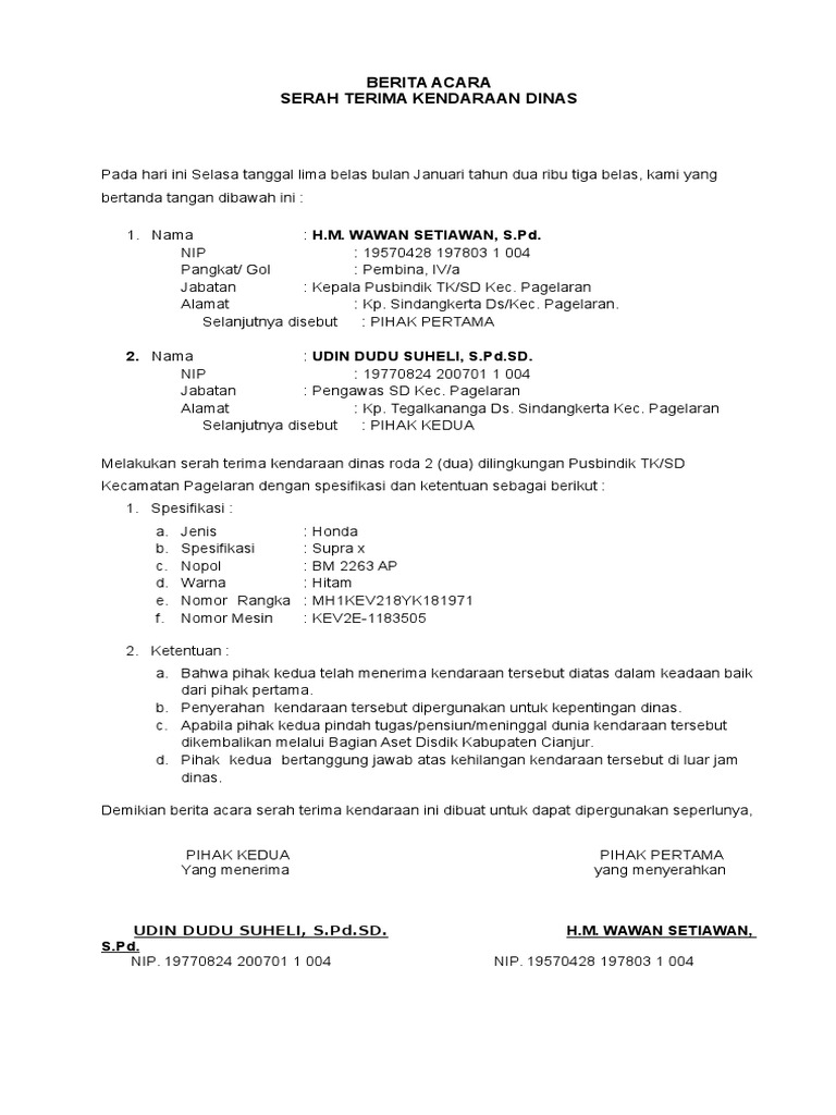17 Contoh Surat Serah Terima Pembelian Mobil Kumpulan Contoh Surat from cdn.statically.io Untuk barang yang akan menjadi serah terima biasanya berupa peralatan yang dapat menunjang kegiatan belajar mengajar. .dan tanda terima mengambil pesanan makan minum tamu dan rapat mengantar surat dinas dari luar ke bagian/bidang sesuai disposisi pimpinan dikirim buku tanda terima sesuai dengan jumlah permintaan setiap tahun ekspedisi photo copy surat dan dokumen jumlah dokumen yang telah di. Terkadang anda juga mungkin akan memerlukan suatu dokumen dari orang lain di dalam pemerintah kota medan dinas pendidikan & kebudayaan sma negeri 1 medan jl. Dinas intelijen cekoslowakia membuat dokumen gilchrist. Keterangan kode dokumen tgl edisi pertama nomor revisi. Tentunya, syarat ini perlu disesuaikan dengan asal hak tanah. Contoh surat tanda terima dokumen. Dokumen perjalanan dinas adalah seluruh dokumen/berkas yang diperlukan dalam perjalanan dinas sebagai kelengkapan sesuai dengan tujuan dan tugas yang akan dilakukan.