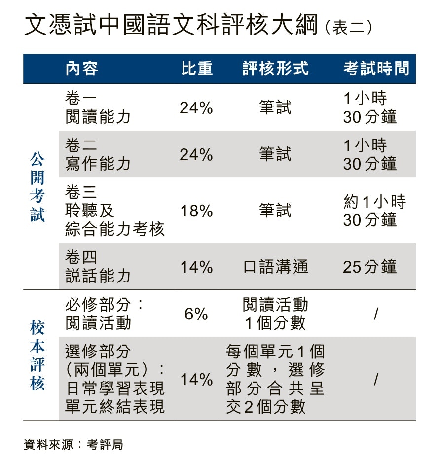 æå ±é¦æ¸¯ ç¨ç«æ¢è¨çè¯å¿åª'é«" from images1.epochhk.com Jun 30, 2021 · 考評局宣布,因應疫情對學校面授課堂的影響,精簡明年中學文憑試12個科目的評核要求,包括取消中國語文科口試,及精簡部分科目的筆試或實習考試評核要求,以釋出教學時間,有關安排只適用於明年的考生。 獲精簡筆試評核要求的科目共有9科,分別是企業、會計與財務概論 卷二、中國歷史. Jun 28, 2021 · 中三級系統評估一直實施暢順,教育局沒有計劃就文憑試中國語文科現時的建議在中三級系統評估作引伸修訂。 高中優化方案建議卷三「聆聽及綜合能力」和卷四「說話能力」兩卷所考核的能力融入「公開考試」及「校本評核」,在公開評核仍然保留讀、寫、聽. May 18, 2017 · 非中國籍的香港特別行政區永久性居民和在外國有居留權的香港特別行政區永久性居民也可以當選為香港特別行政區立法會議員, 惟其比例不應超過: a 10%